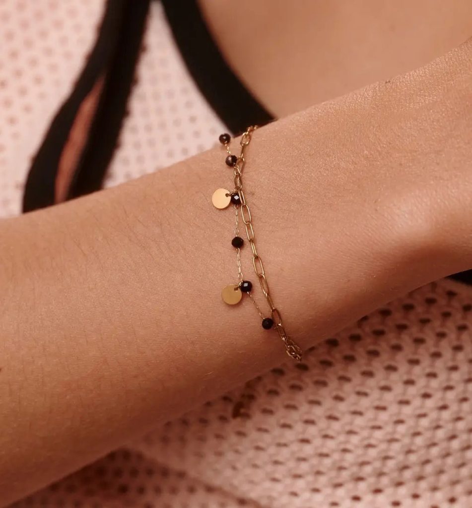 Bransoletka z czarnym agatem złota BEA0040 fot. bydziubeka.pl